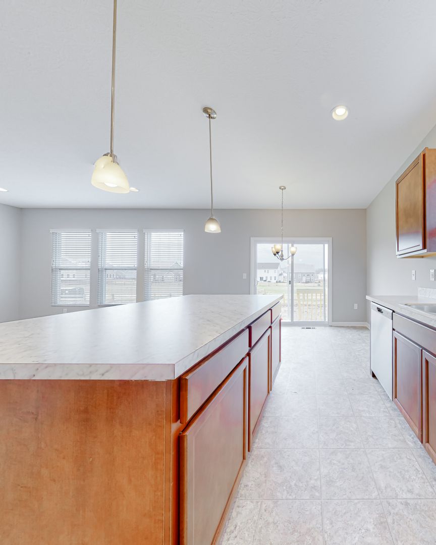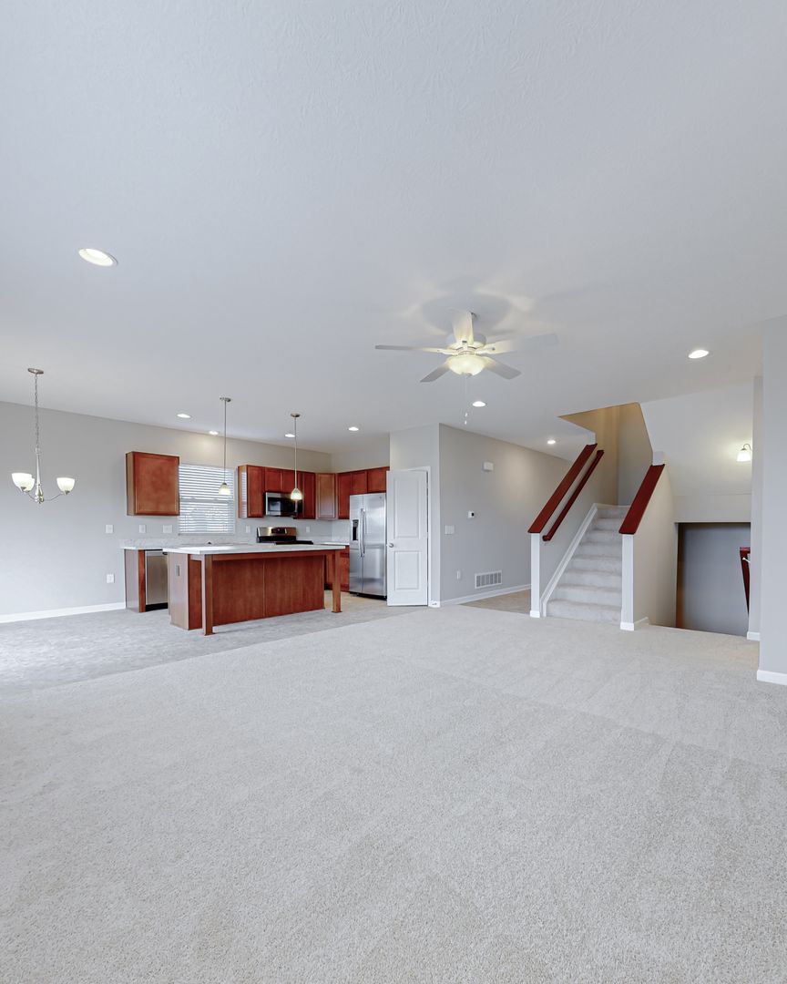 As the first occupants, you will fall in love with this well-designed home with a private owner's suite and an open-concept kitchen. You enter through the front door and are greeted by a large entryway leading you to two bedrooms and a full bathroom. Down the entry hallway is a large living room at the center of the home. The open floor plan opens to the spacious kitchen, allowing multiple cooks and activities. There are plenty of cabinets and a pantry to give you that abundance of storage and a large island for functional prep work and additional seating. The living room features a wall of windows and views of the backyard. Additionally, off of the living room is the owner's suite with a full bathroom and walk-in closet. Also access to the laundry room and two-car garage. From the living room, take a few steps down to the unfinished lower level, perfect for storage. On the upper level is the fourth bedroom with a full bathroom. There is a large backyard and an attached garage in the front of the home.