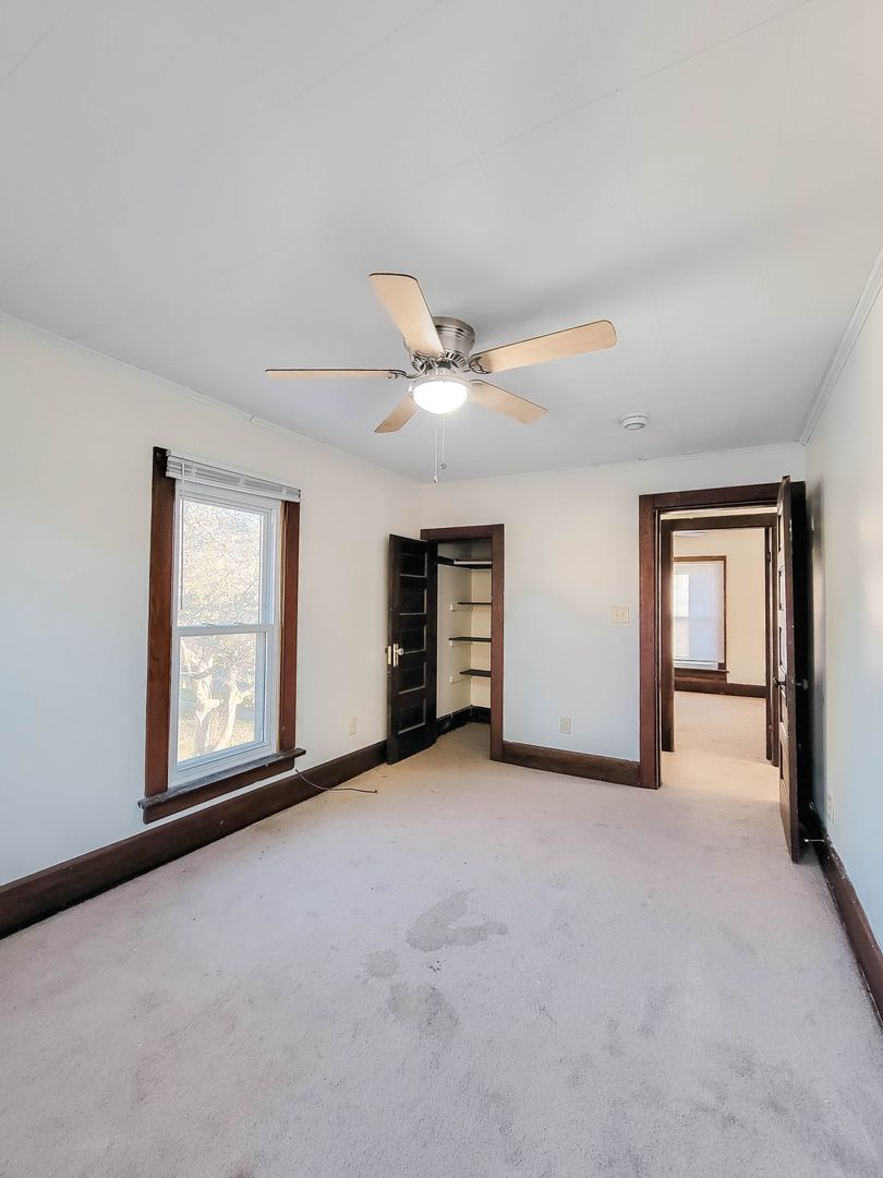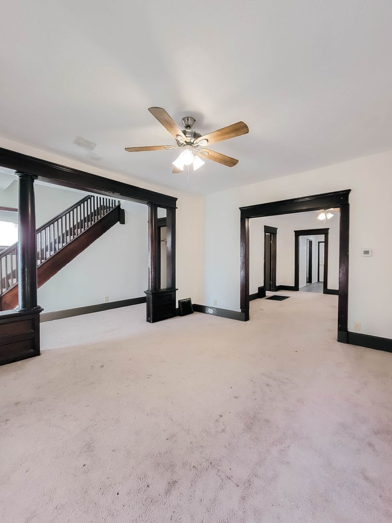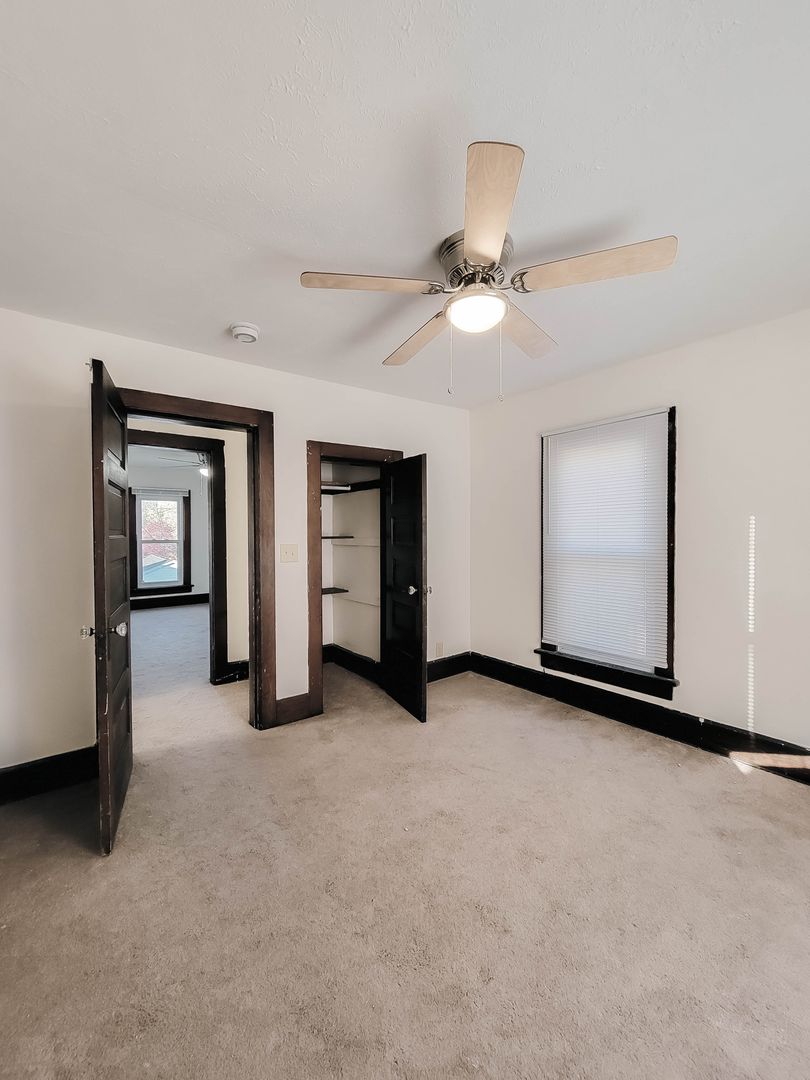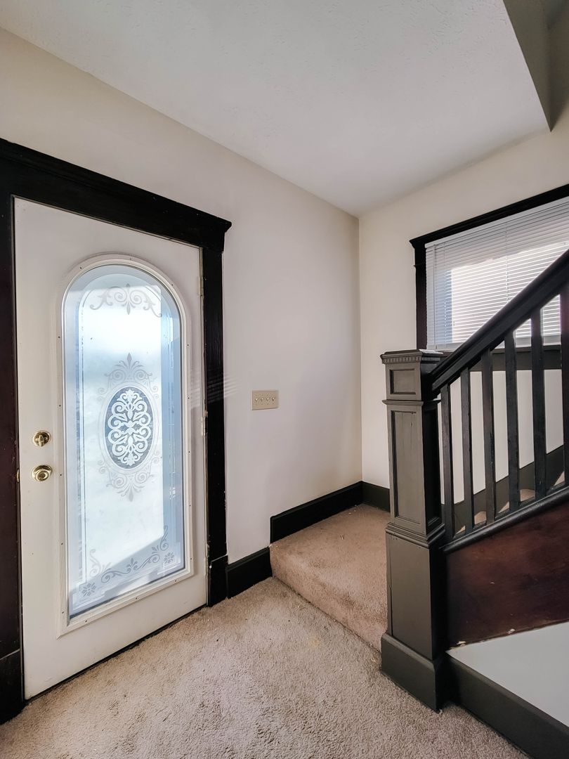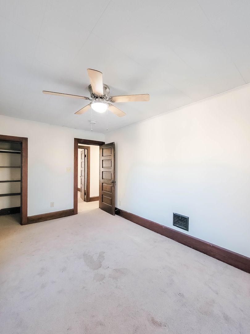 This home opens up to the foyer with the staircase to the second floor on the left and open entry into the living room on the right. The living room has high ceilings, carpet, and fresh paint that extend throughout. The living room opens to the dining room with a bench seat beneath the window and access to the first floor bedroom. The first bedroom has a large closet and additional shelving with double door access to the basement. The basement has fresh paint and is great for rough storage. Back off of the dining room is a hallway with the last two rooms on the first floor. There is a full bathroom with laundry area with washer dryer hookups (no washer or dryer included). The other room is a great kitchen with lots of counterspace, new stainless steel appliances, plenty of cabinets, and eat-in dining space. On the second floor there are three more bedrooms and a full bathroom with storage closet.