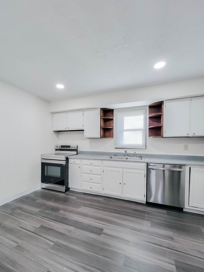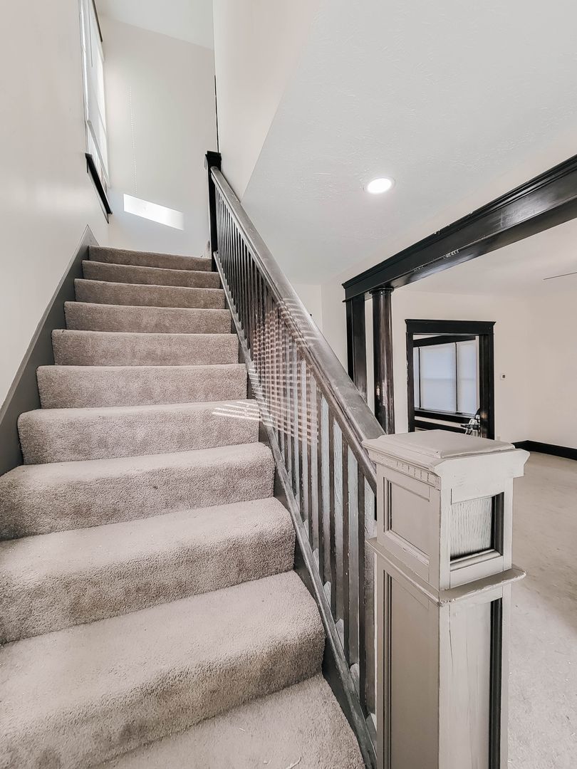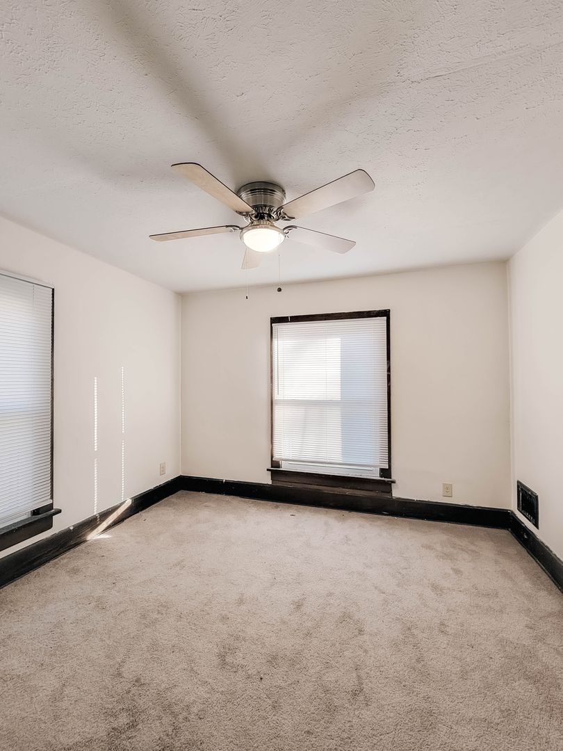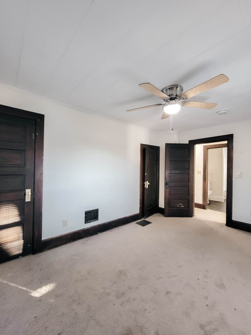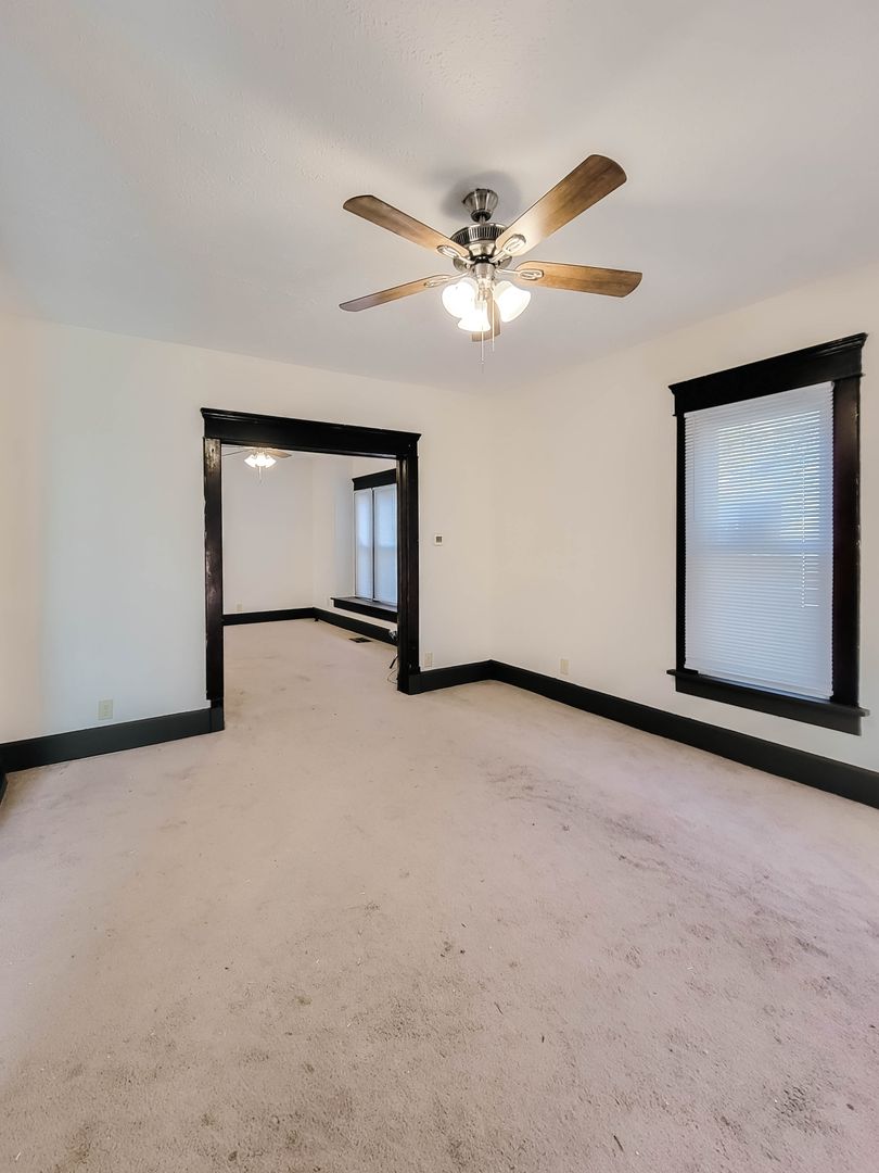 This home opens up to the foyer with the staircase to the second floor on the left and open entry into the living room on the right. The living room has high ceilings, carpet, and fresh paint that extend throughout. The living room opens to the dining room with a bench seat beneath the window and access to the first floor bedroom. The first bedroom has a large closet and additional shelving with double door access to the basement. The basement has fresh paint and is great for rough storage. Back off of the dining room is a hallway with the last two rooms on the first floor. There is a full bathroom with laundry area with washer dryer hookups (no washer or dryer included). The other room is a great kitchen with lots of counterspace, new stainless steel appliances, plenty of cabinets, and eat-in dining space. On the second floor there are three more bedrooms and a full bathroom with storage closet.