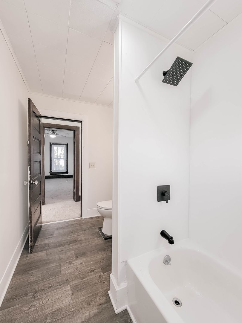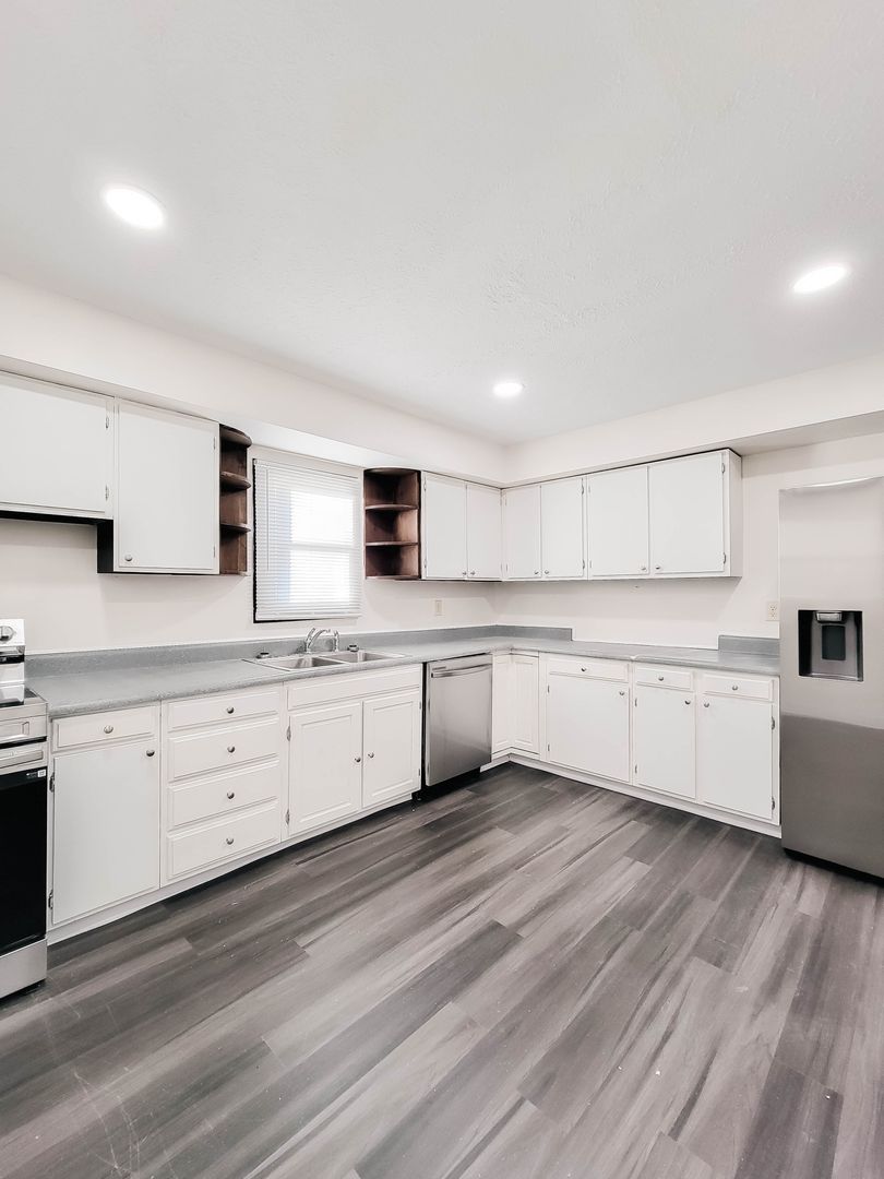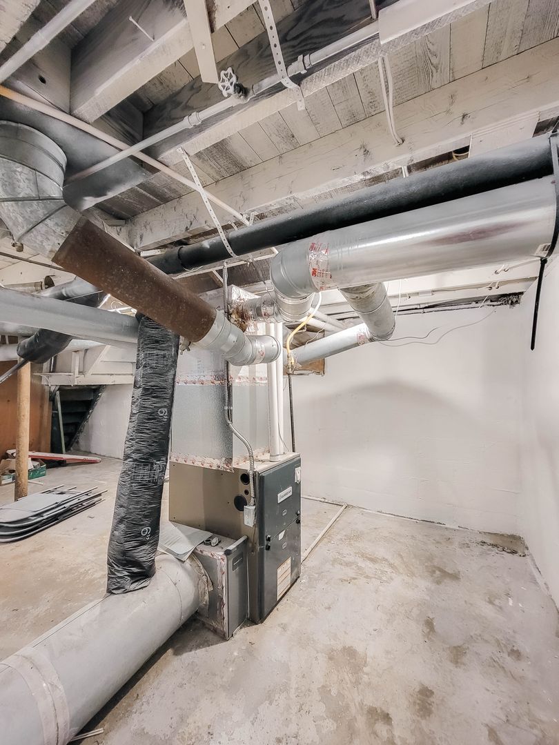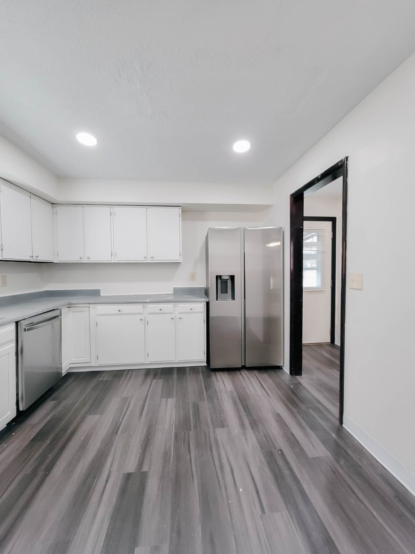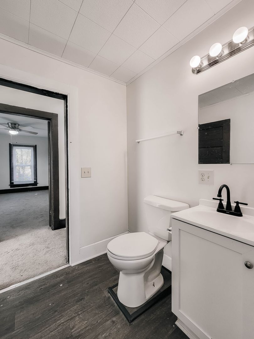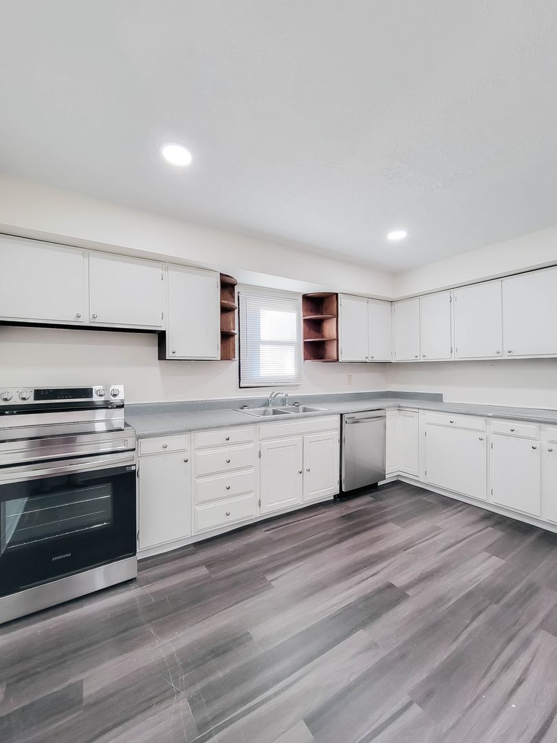This home opens up to the foyer with the staircase to the second floor on the left and open entry into the living room on the right. The living room has high ceilings, carpet, and fresh paint that extend throughout. The living room opens to the dining room with a bench seat beneath the window and access to the first floor bedroom. The first bedroom has a large closet and additional shelving with double door access to the basement. The basement has fresh paint and is great for rough storage. Back off of the dining room is a hallway with the last two rooms on the first floor. There is a full bathroom with laundry area with washer dryer hookups (no washer or dryer included). The other room is a great kitchen with lots of counterspace, new stainless steel appliances, plenty of cabinets, and eat-in dining space. On the second floor there are three more bedrooms and a full bathroom with storage closet.