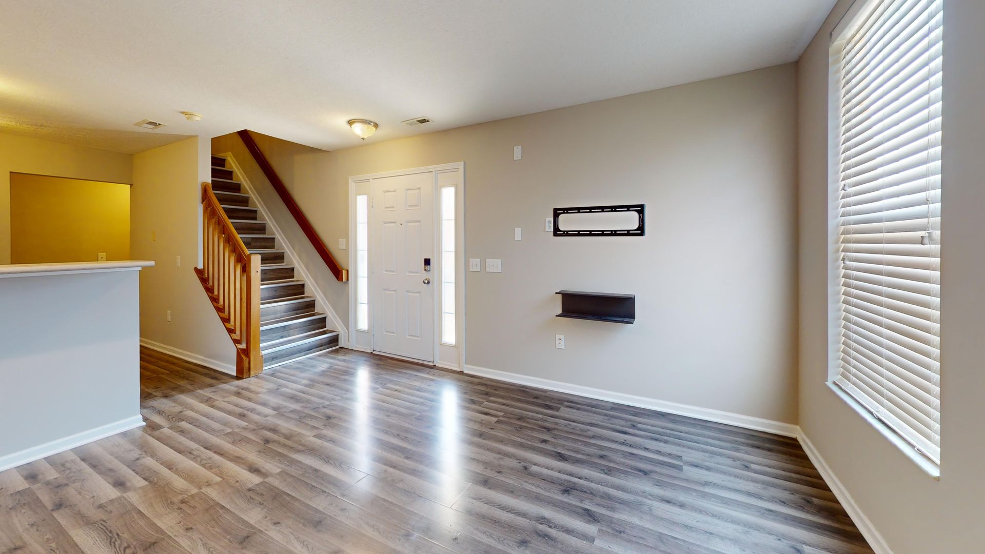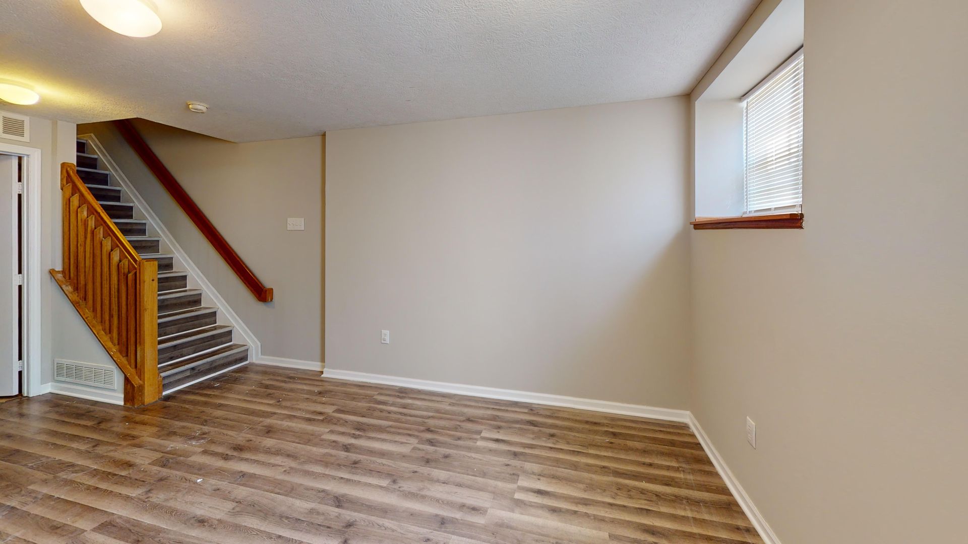 Stunning Three-Story Condo; opens on the entry floor to a large living room overseeing the kitchen. The kitchen has appliances included with additional storage. To the back of the kitchen is the stairway down to the finished basement level bedroom. Towards the back of the bedroom is a half bath, laundry area, and utility space with additional storage. Back to the living room is the stairway to the second floor. On the this level is a large bedroom with double closets. Next to the bedroom is a full bathroom.