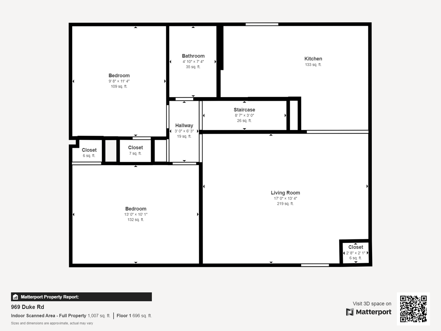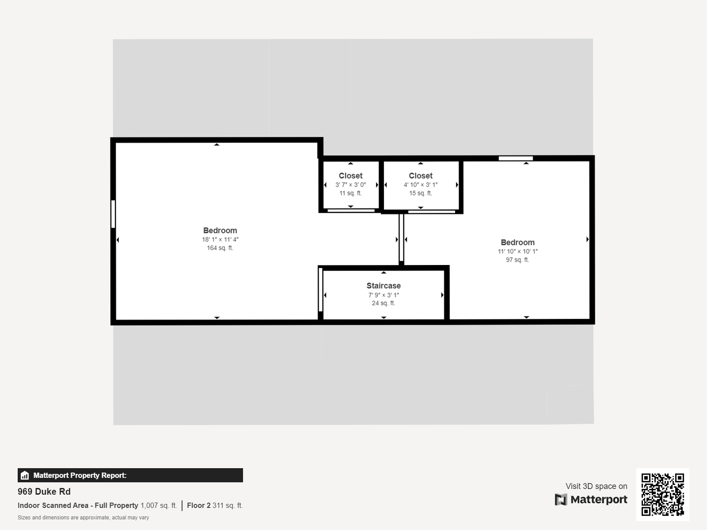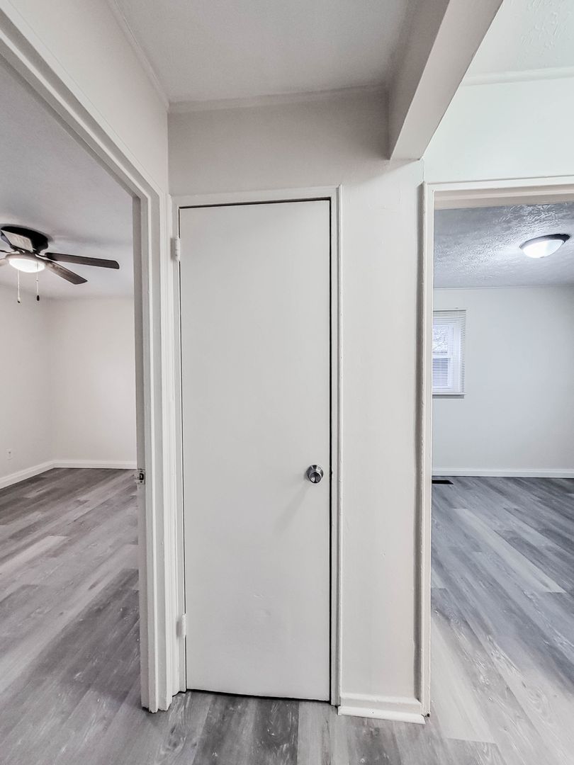 Upstairs there is a front room with a closet as well as a bedroom and another closet.